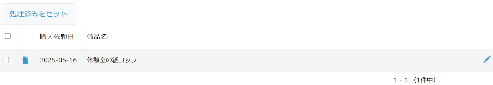一覧画面の上部に「処理済みをセット」ボタンを追加
