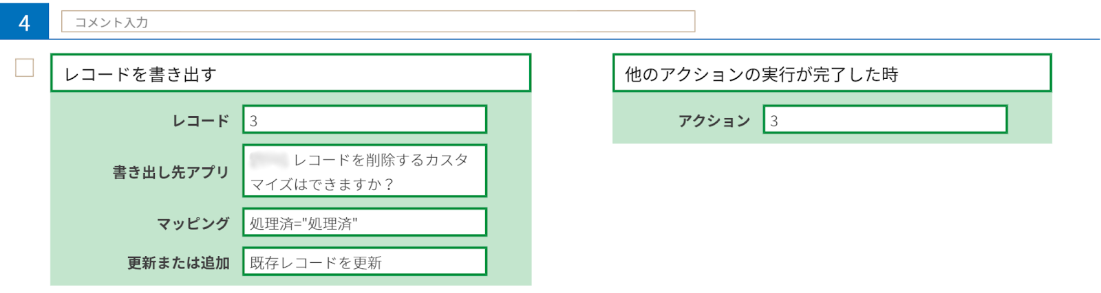 なおレコード削除の代替案として、kintoneアプリ側で「削除済」「処理済」など不要であることを示すフィールドを作成し、kintoneアプリやカスタマイン上で利用する方法が考えられます。