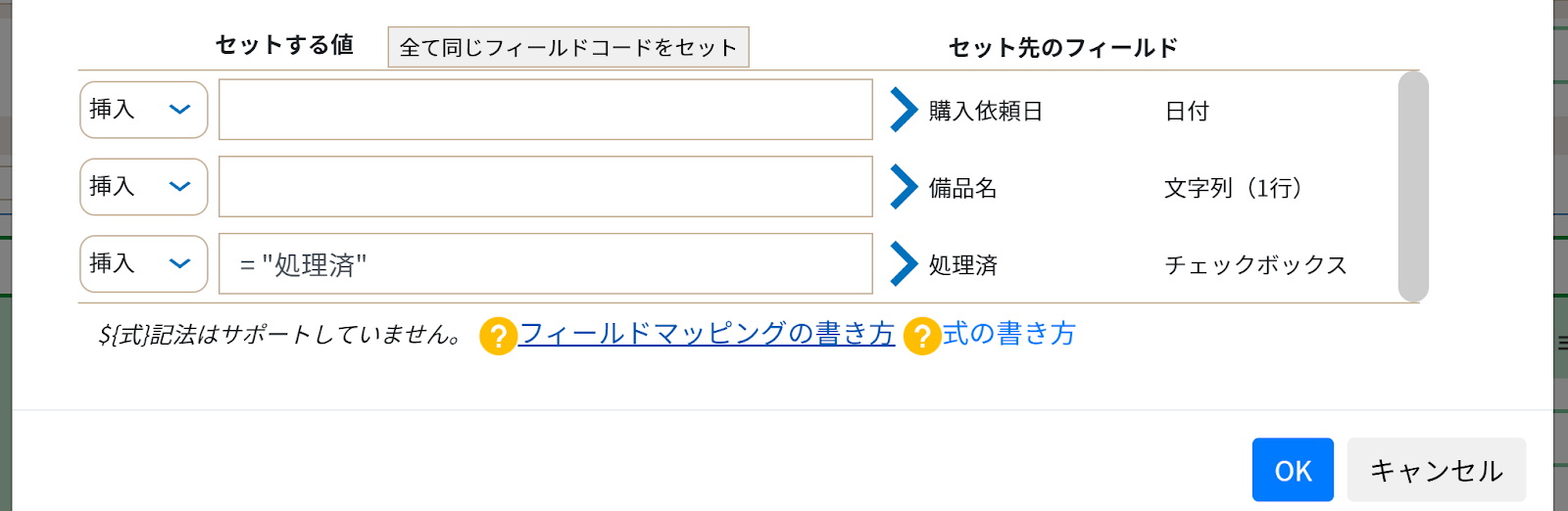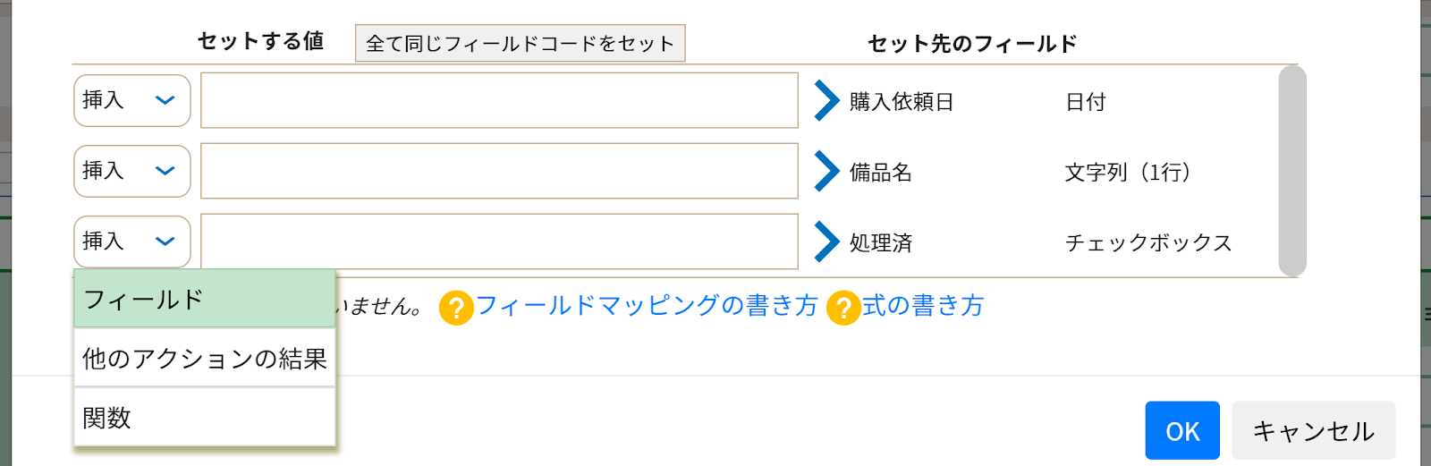 ※フィールド名とフィールドコードは同じものを指定