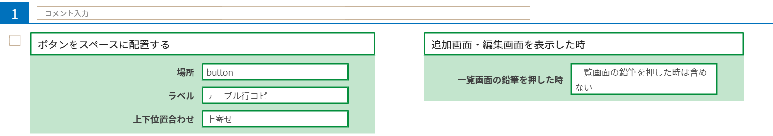 スペースは「button」スペースを指定し、ラベルも「テーブル行コピー」と指定します。