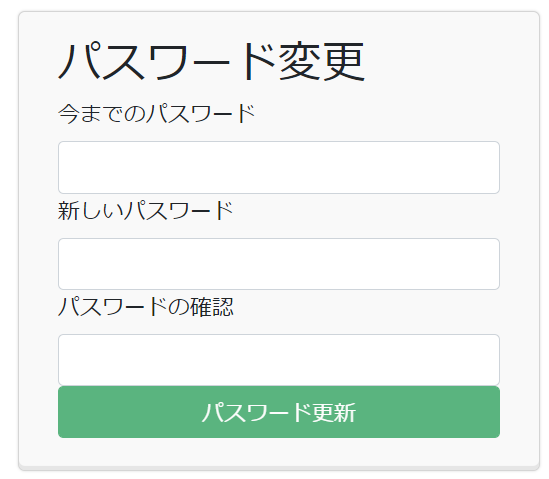 パスワードを入力する画面が開きますので、今までのパスワードと新しいパスワードを入力し「パスワード更新」をクリックしてください。