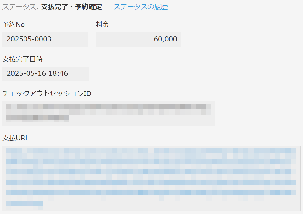 チェックアウトセッションの支払URLを予約管理アプリの「支払URL」フィールドにセットする