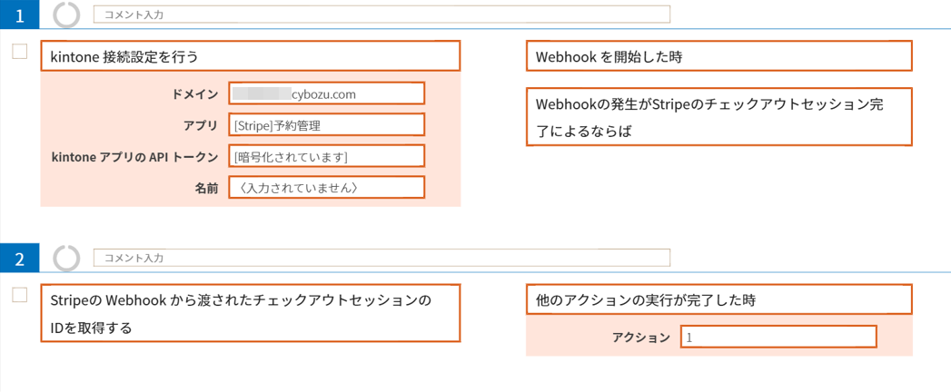 今回のカスタマイズは、ジョブ実行の起点となるWebhookの通知元が kintone ではなくStripeです。