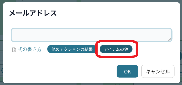 ダイアログが表示されますので「アイテムの値」をクリックし、