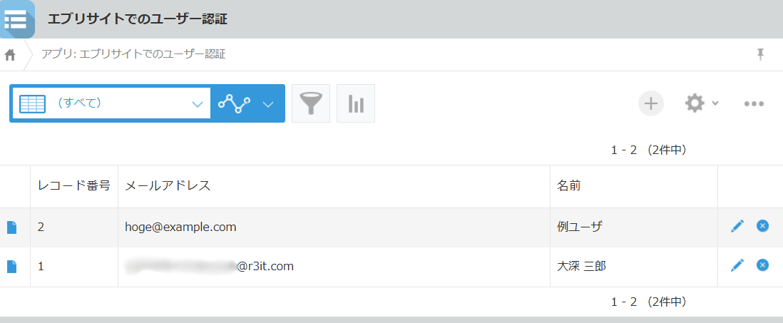 アプリには有効でなおかつ、自身が利用しているメールアドレスを設定したレコードを1行以上登録しておいてください。