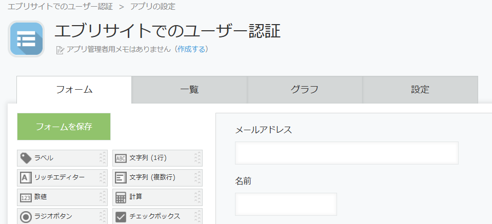 ログインページを実現するために、まずはログインできるユーザーを設定するためのkintoneアプリを1つ作成します。