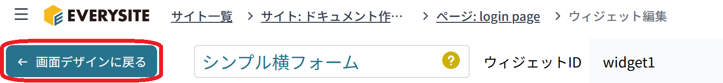 上部の「画面デザインに戻る」でページ画面に戻っておきましょう。
