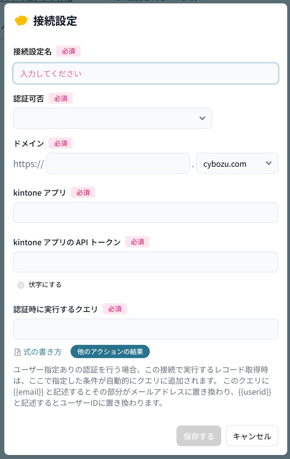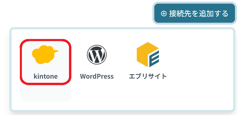 ここでは、kintoneで先ほど設定した顧客管理アプリに対して接続設定を設定します。