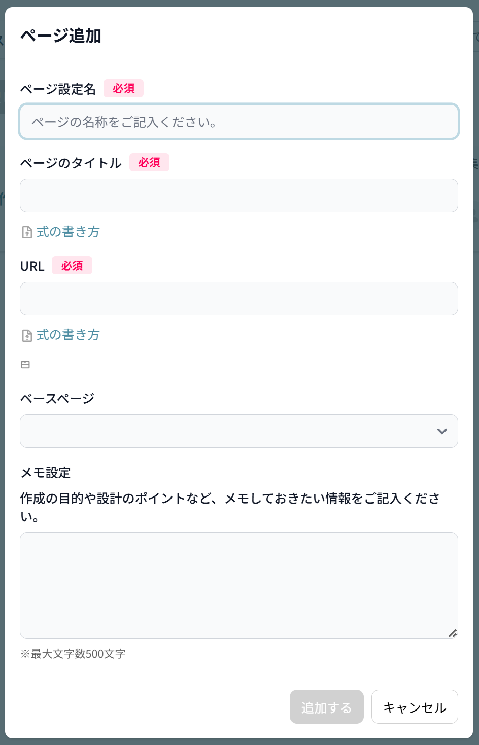 「追加する」をクリックすると、次のようなページ画面が開きます。