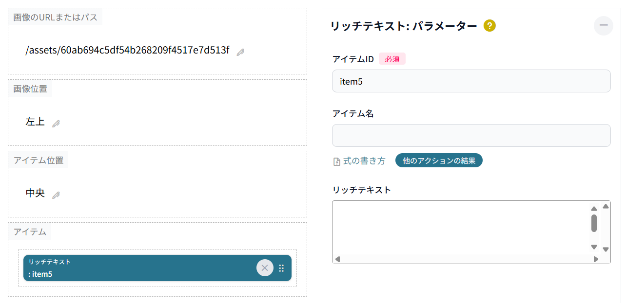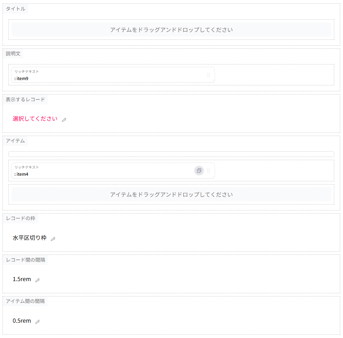 アイテムの設定は下記の通りです。リッチテキストのアイテムの設定が続きます。