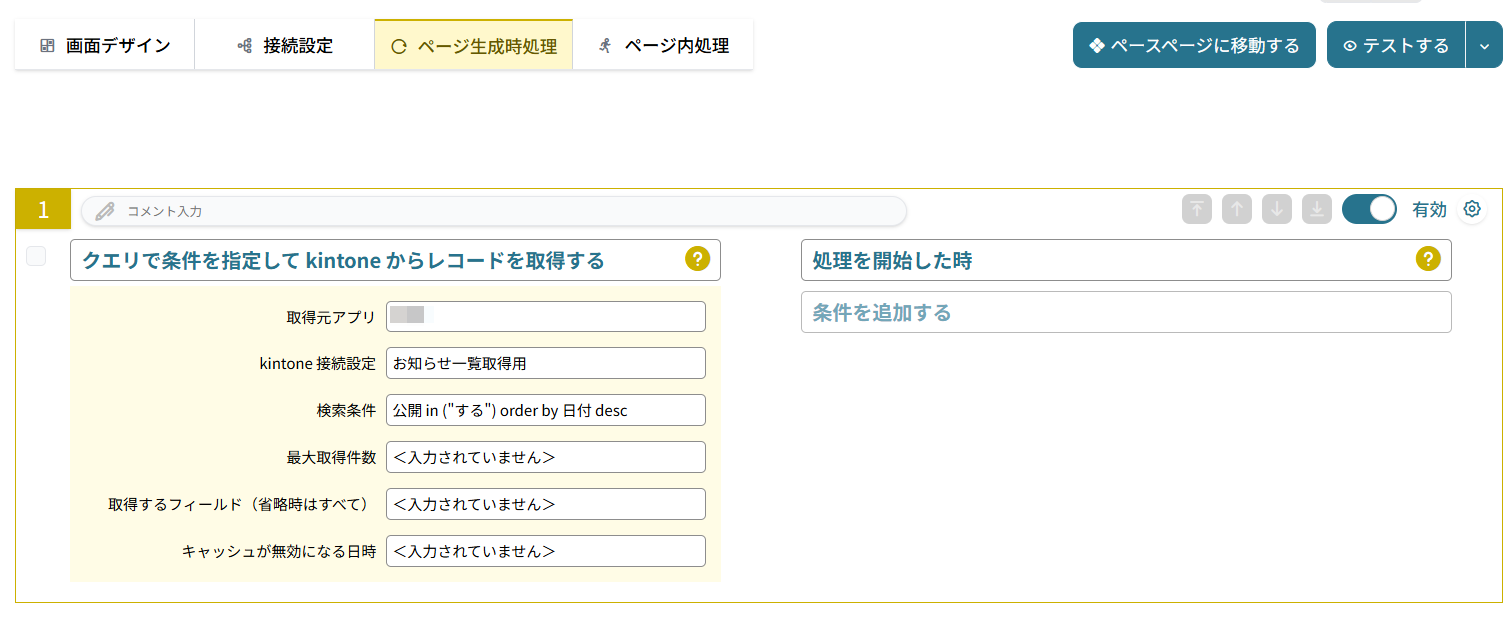 ページ生成時処理では、そのページの元になるレコードの取得が必要となるため、設定します。