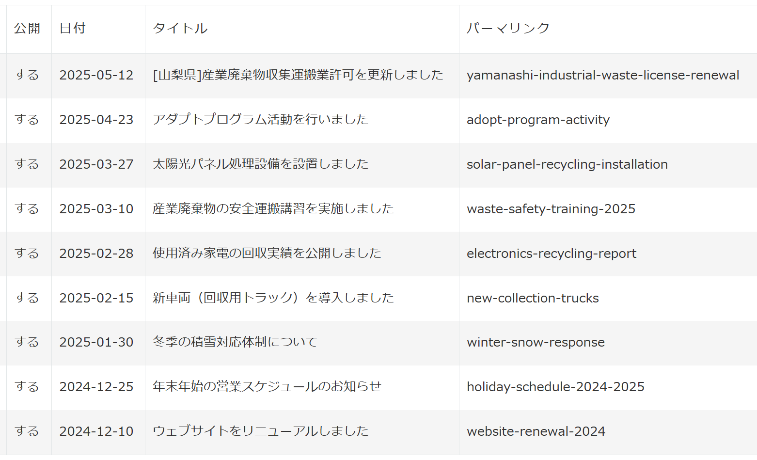 このリンクは、後述のお知らせ詳細ページのリンクと一致するように作成しています。