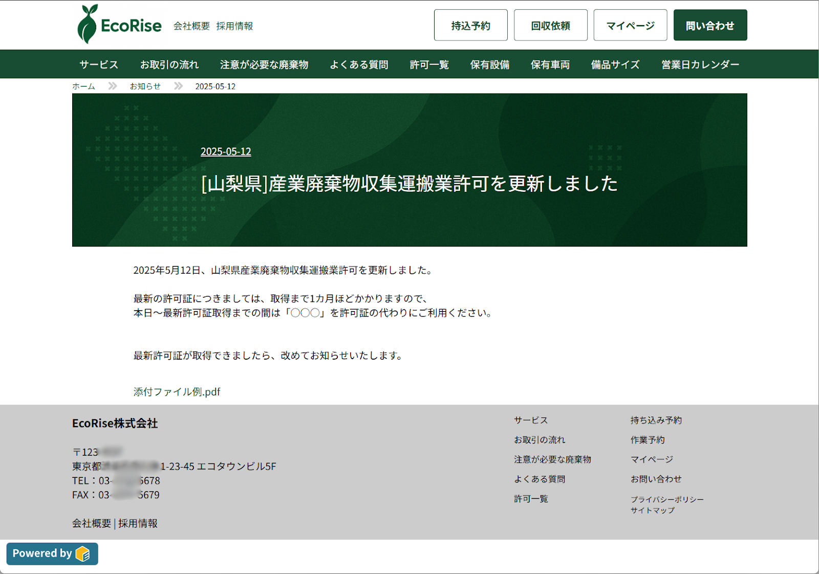 エブリサイトでは、コーポレートサイトに掲載するお知らせページなどを作成する際に、kintone に登録された情報をもとに、レコードを展開して1レコードを1ページとして生成できます。