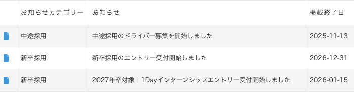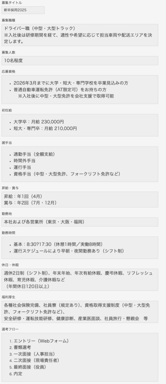 募集要項ページのページ生成時処理