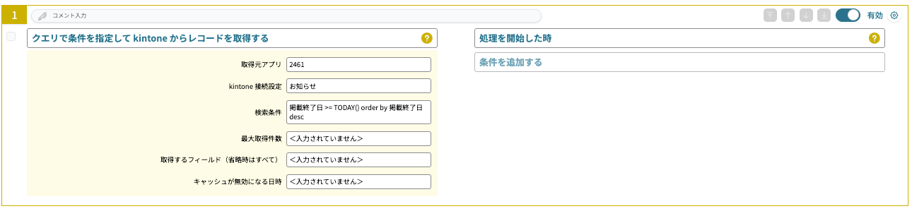 もし「kintoneのレコードを更新するだけで、お知らせの方も更新したい」ということであれば、「ページ内処理」にてkintoneからレコードを取得する形になります。要件によってはこちらにもチャレンジしてみてください。