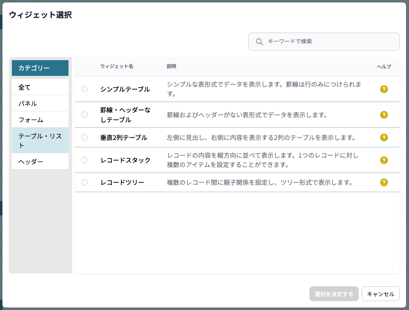 【ウィジェットカテゴリ】テーブル・リスト