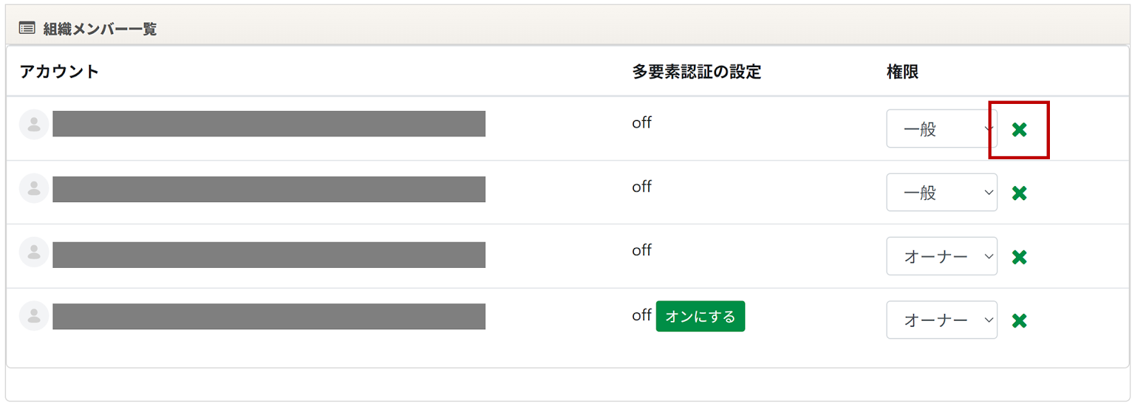 「gusuku共通管理」>「組織管理」のタブ、「組織メンバー一覧」よりご確認ください。