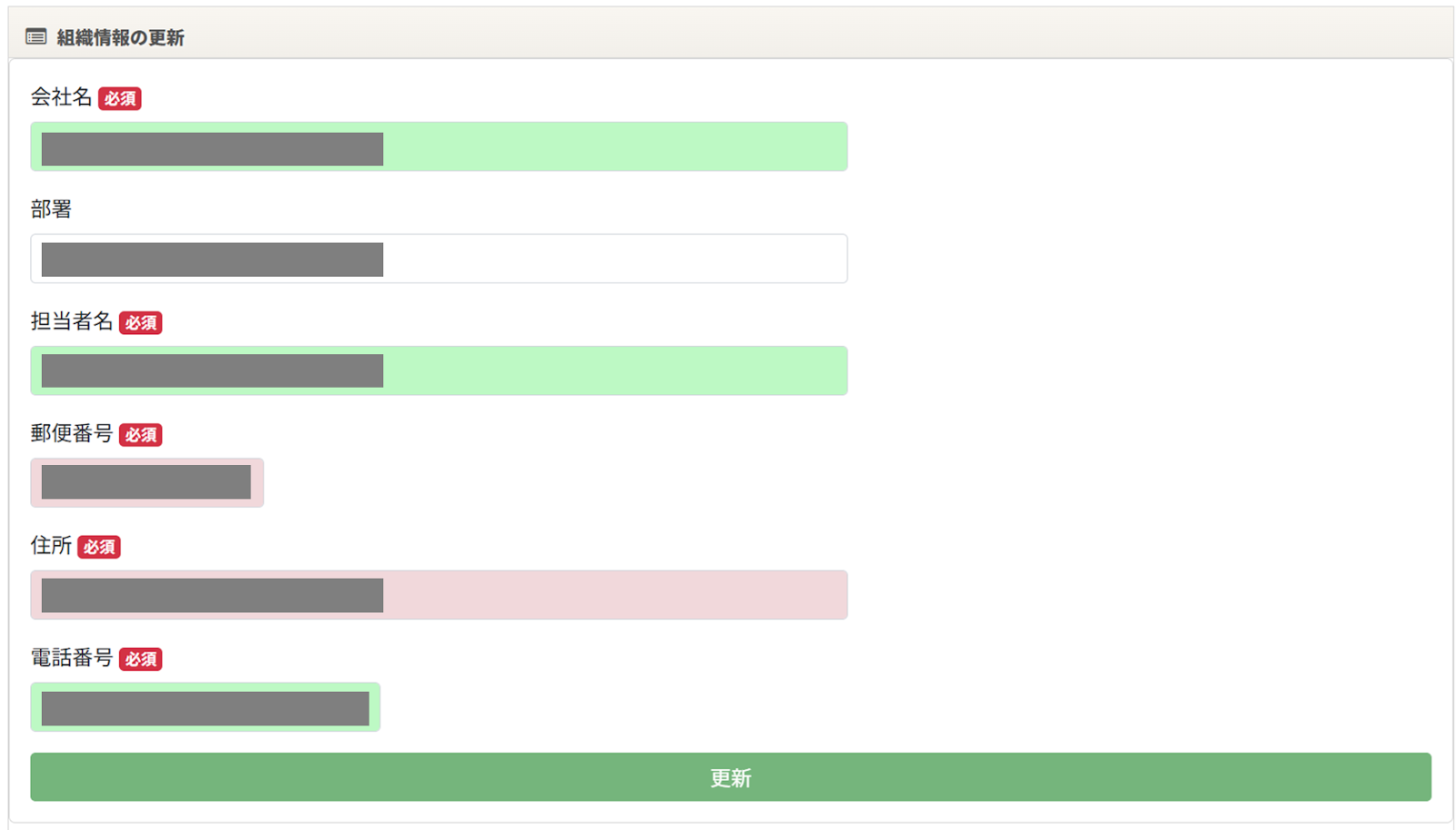 「gusuku共通管理」>「契約管理」>「組織情報の更新」メニューより、情報を更新してください。