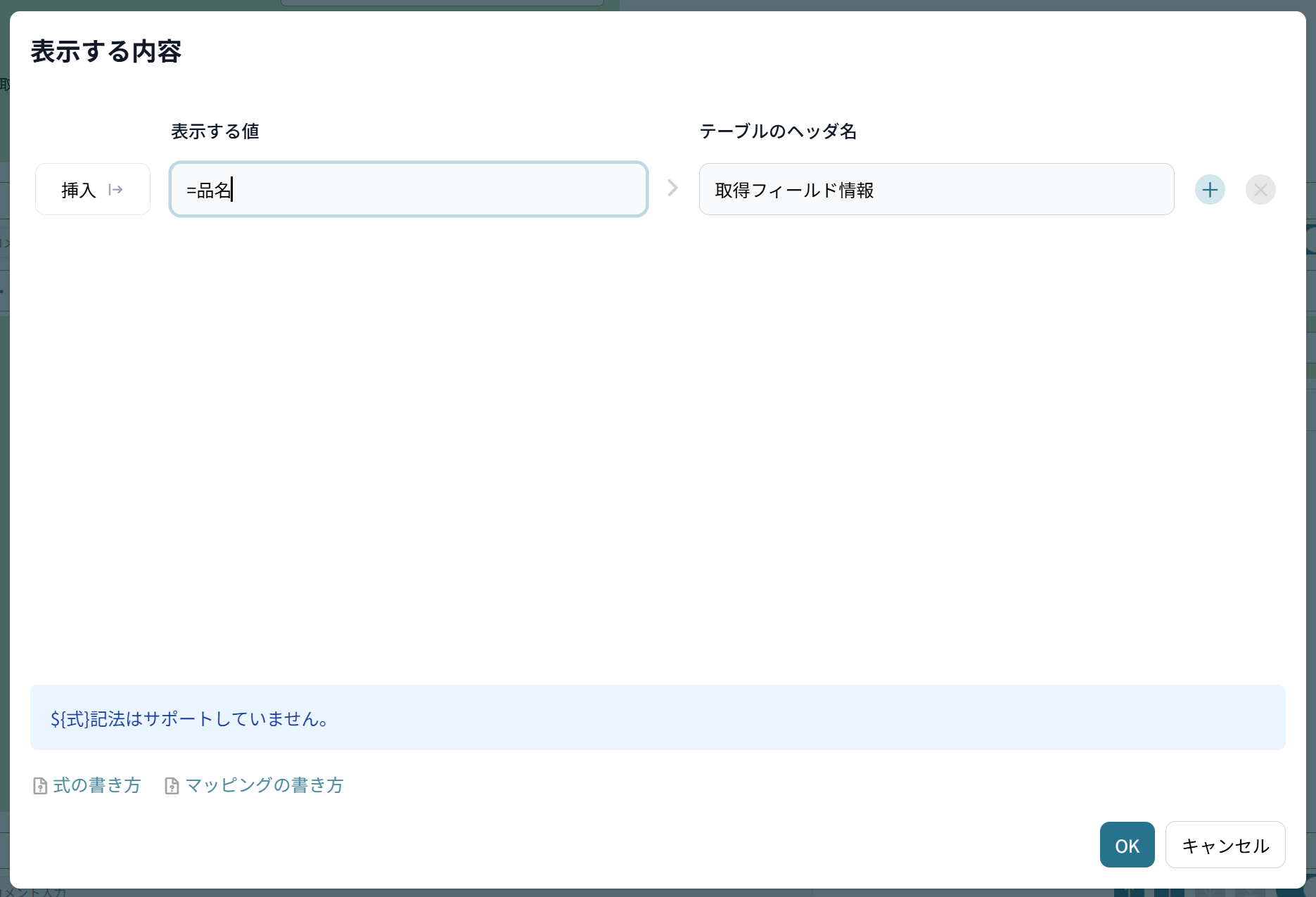 ポップアップから値を選択し、OKをクリックすると