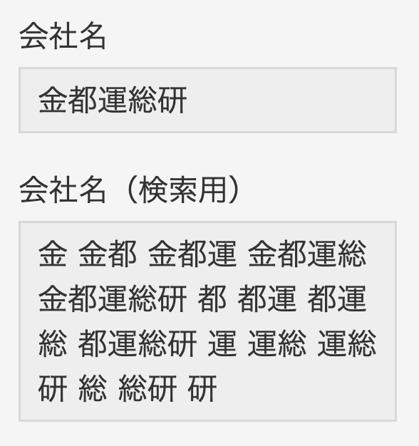 このように指定することで「会社名」の値を元にkintoneの検索機能で検索可能な形式の文字列が作成され「会社名(検索用)」にセットされるようになります。