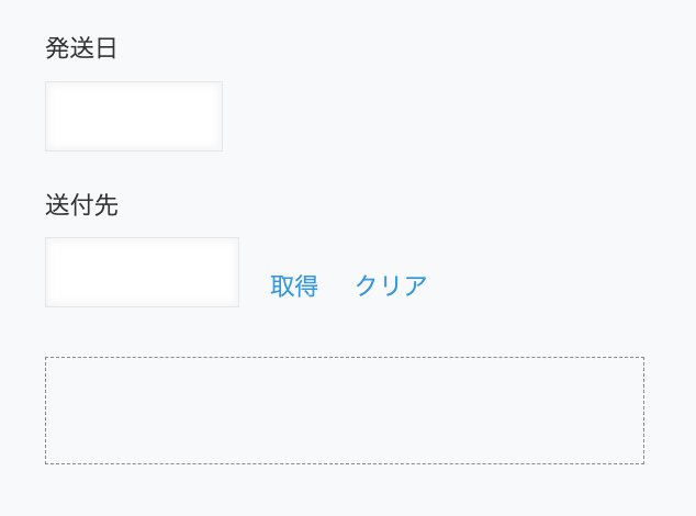 「発送日」と「送付先」を指定してレコードを保存すると、詳細画面で「発送依頼」アプリのレコードを取得し、取得されたテーブルの行が関連レコードの様に表示されます。