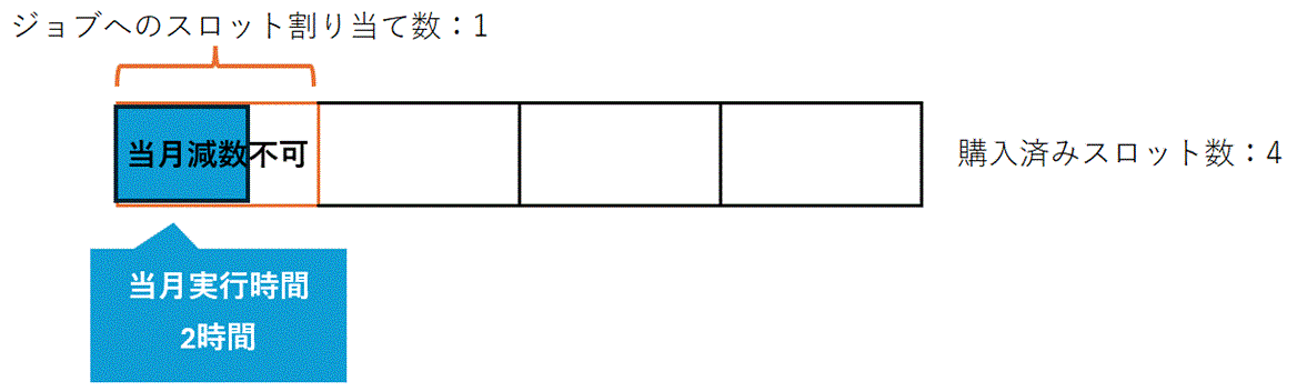 ※ただし、最初の1アプリスロットについてもジョブへの割り当てスロット数を減らしたい場合については、既にJob Runnerを実行していますので、翌月1日まではジョブへの割り当てスロット数を減らす事はできません。