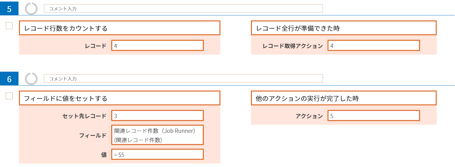 アクション4番で取得したレコード全行に対して、結果のレコード件数をカウントし、フィールドに値をセットします。