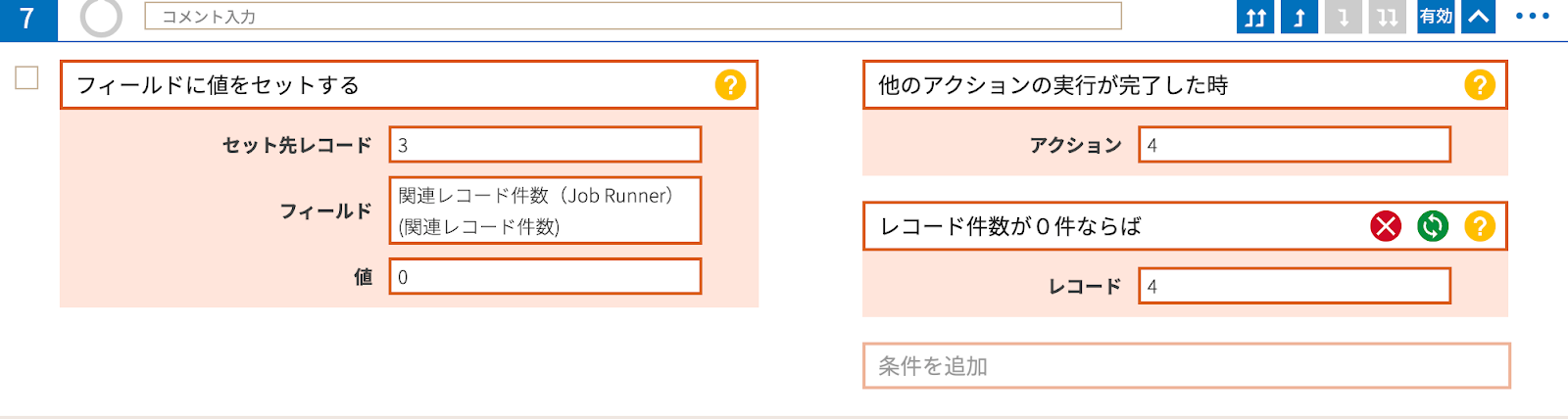 アクション4番で取得したレコードが0行だった場合、関連レコード件数に0をセットします。