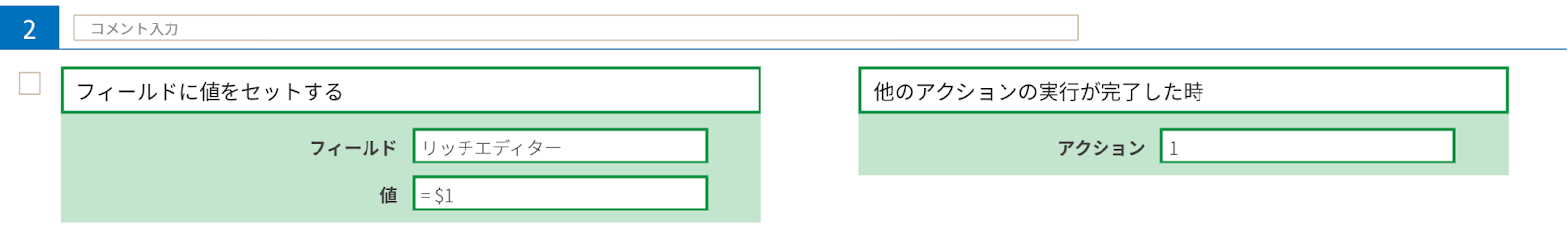 やること「フィールドに値をセットする」を使ってフィールドに値をセットします。