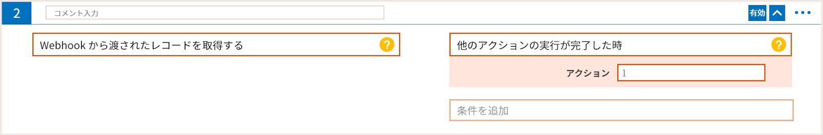 この時使用する条件は条件「Webhook を開始した時」を指定します。なおkintone アプリのWebhook のカスタマイズの起点は、必ずこの条件になります。