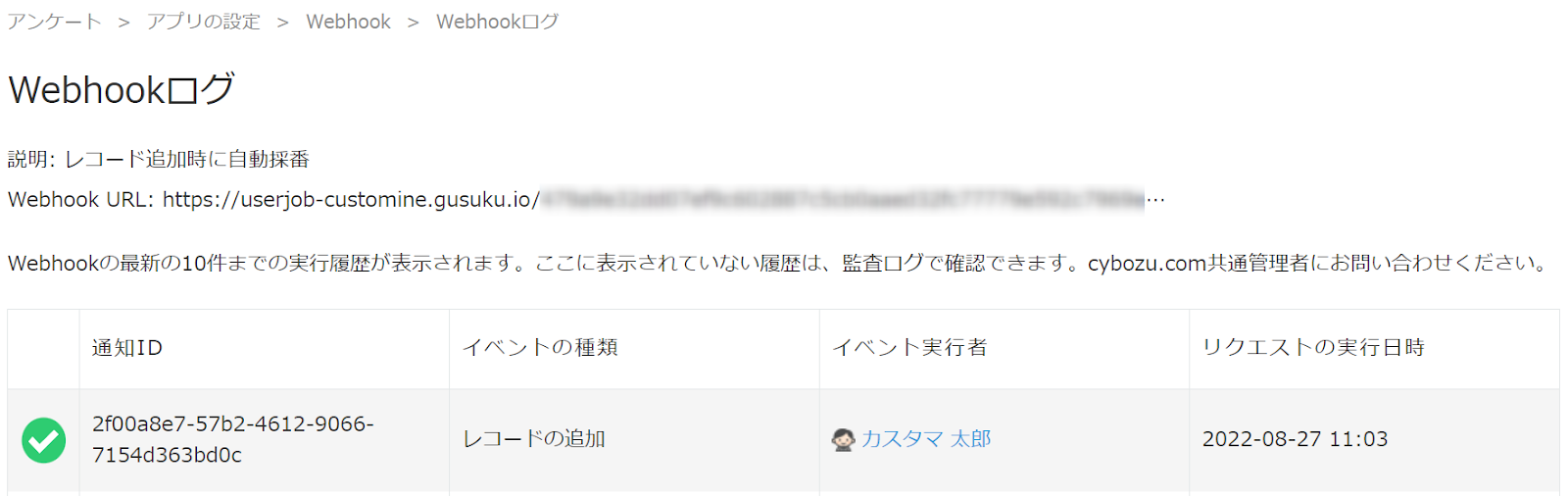kintone から正常に Webhook の通知が行われたかを確認する