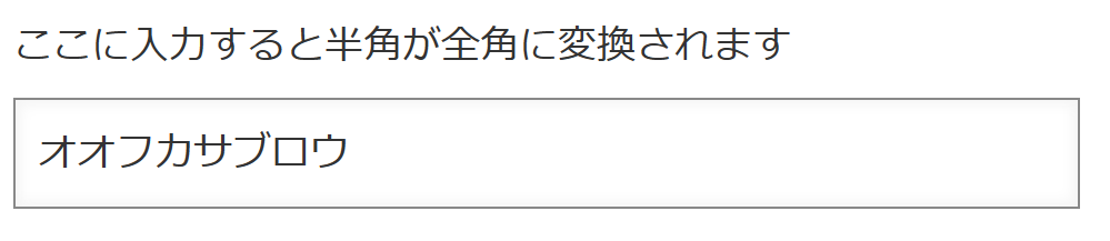 「ここに入力してボタンを押すと半角が全角に変換されます」のカスタマイズ