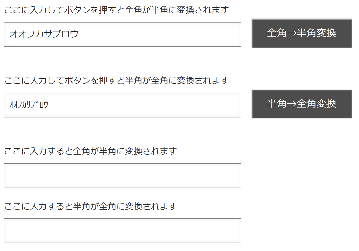 「ここに入力してボタンを押すと全角が半角に変換されます」のカスタマイズ