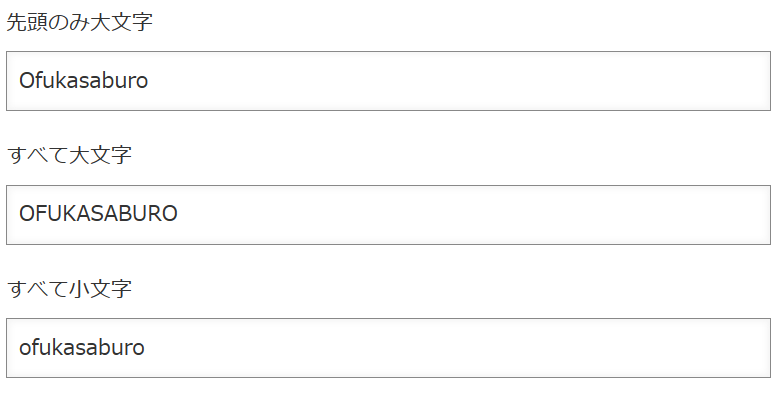 ※「ここに入力するとひらがな・カタカナがローマ字に変換されます」フィールドに「おおふかさぶろう」と入力しても同様の結果となります。