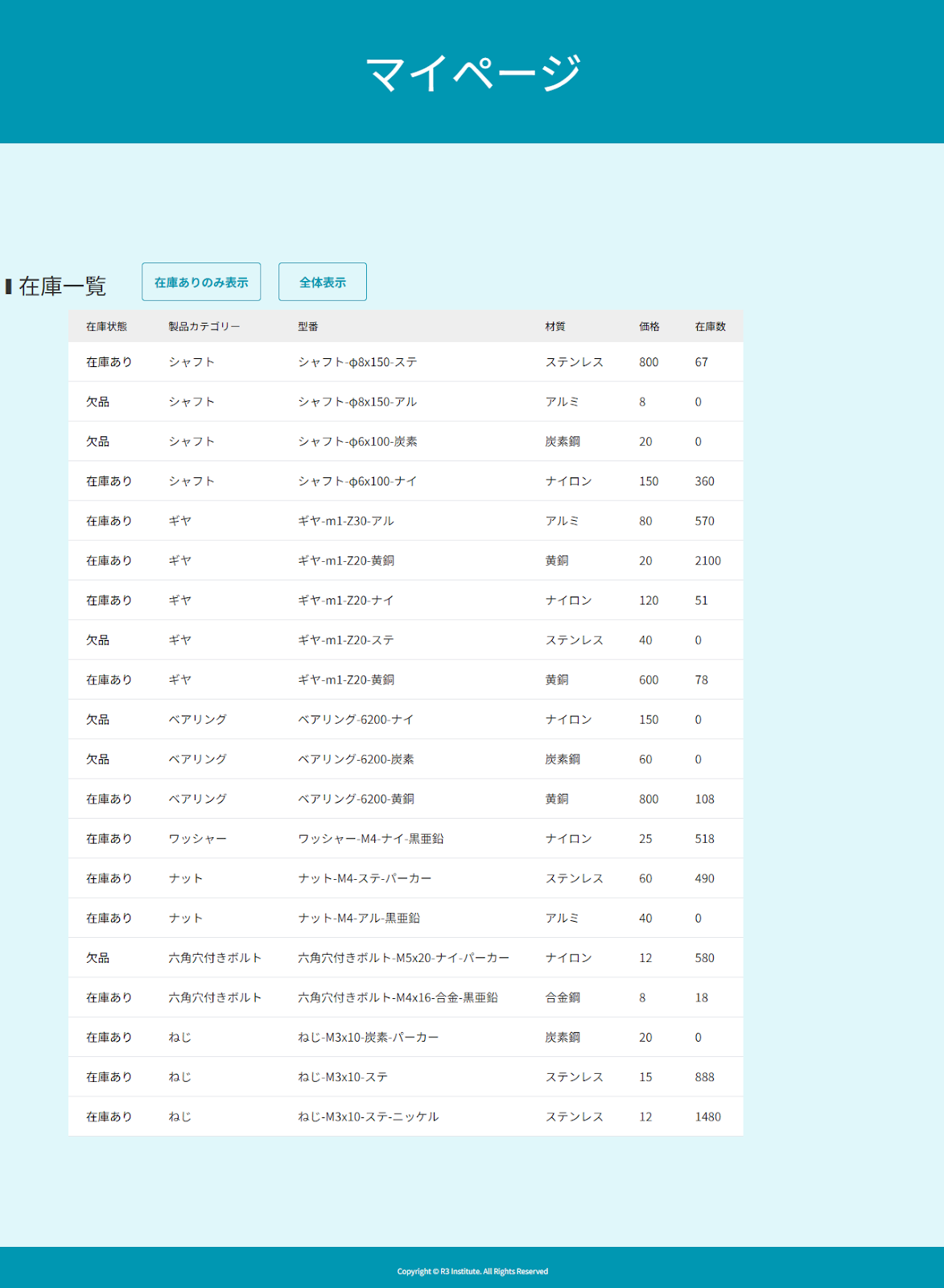 作成するうちの「マイページ(在庫一覧)」についての作成例を紹介します。