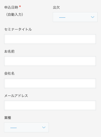 ウィジェット「垂直2列フォーム」は項目のラベル部分を左の列、項目本体を右の列と左右の列に分割して複数のアイテムを表示することができる入力フォーム形式です。