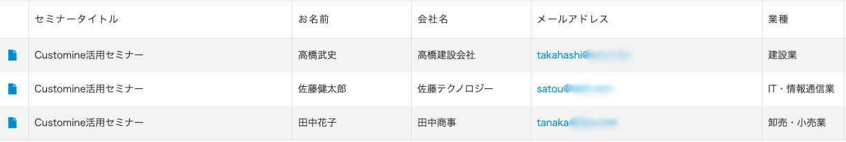 実際にフォームに入力して送信すると、kintoneにはこのようにレコードが追加されます。
