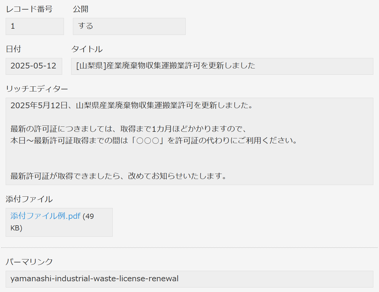 お知らせ詳細ページ