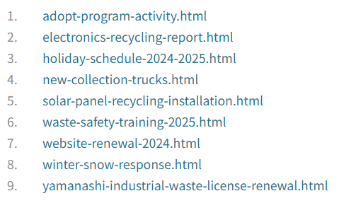 実際にページを生成すると、「パーマリンク」フィールドの値を元に、1レコード1ページが下記のように展開されました。