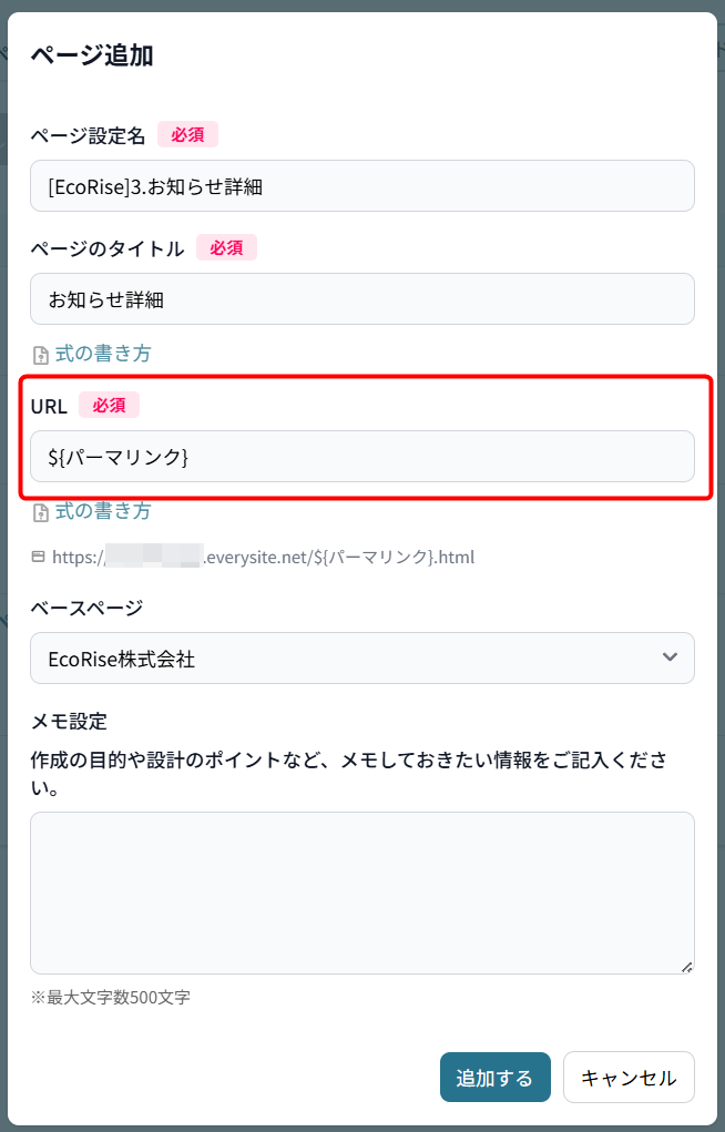 また、もう1点ポイントになるのが「URL」です。