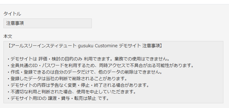 今回の例では、kintoneアプリのレコードの「タイトル」をタイトル部分に、「本文」を内容部分に反映させます。