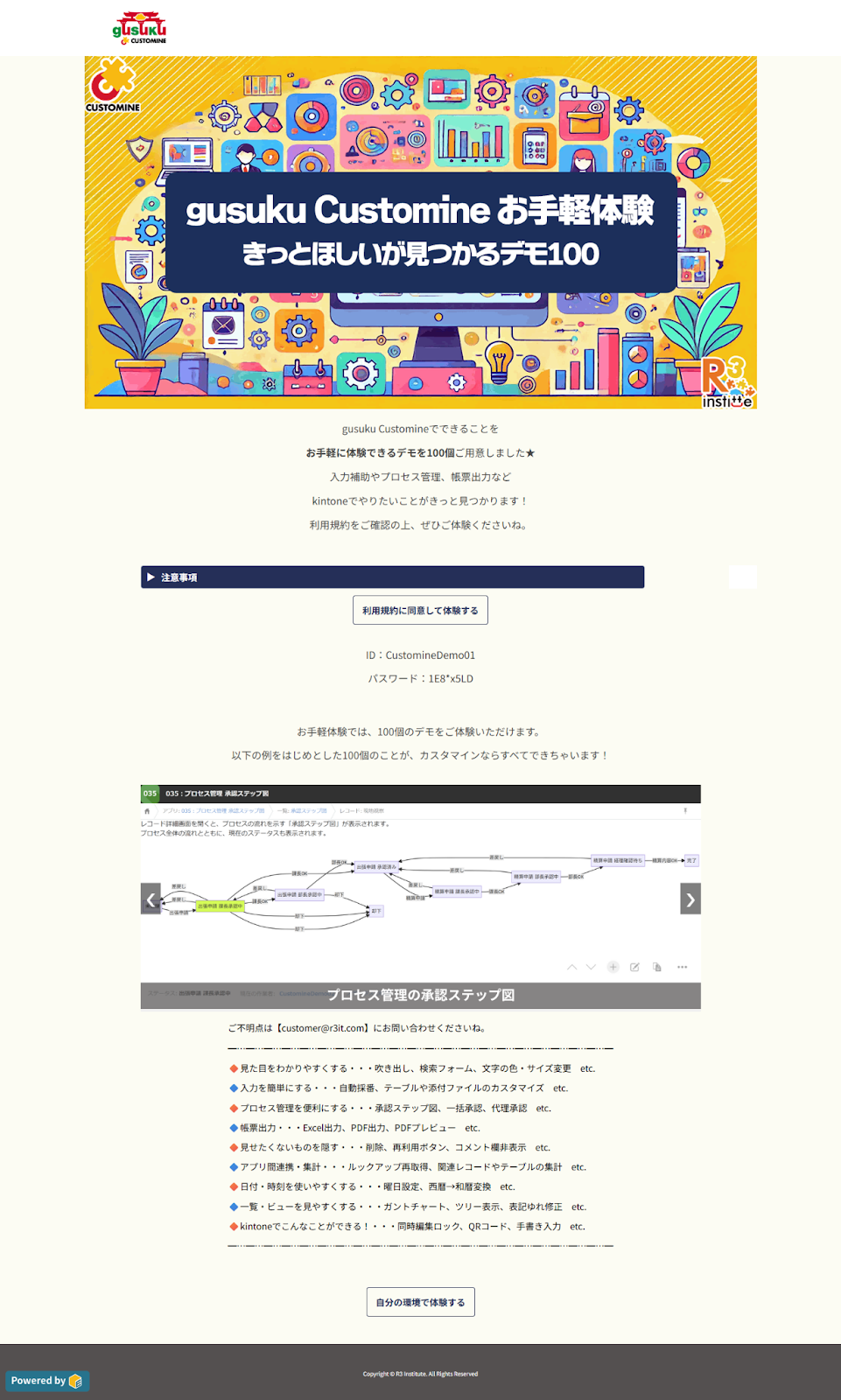 この記事では、kintoneのデータをページに反映させる方法と、一般的なWebページでよく利用される動き(折りたたみパネル・カルーセル)の設定方法を順に説明します。