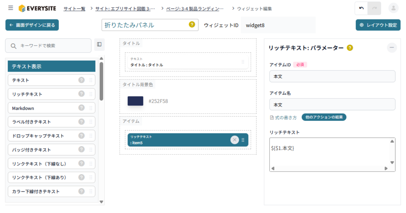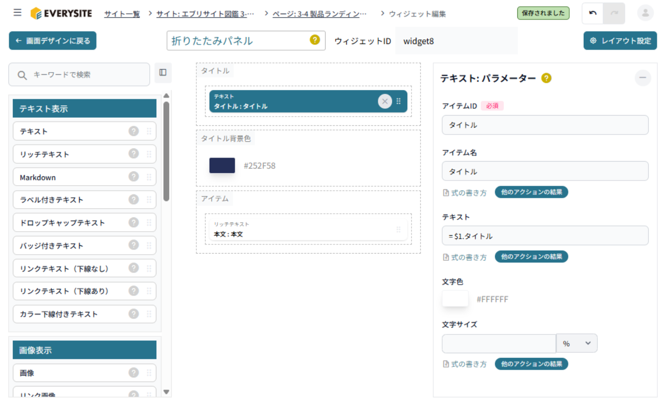 折りたたみパネルやカルーセルを活用することで、情報量が多くても見やすく整理されたページを作成できます。