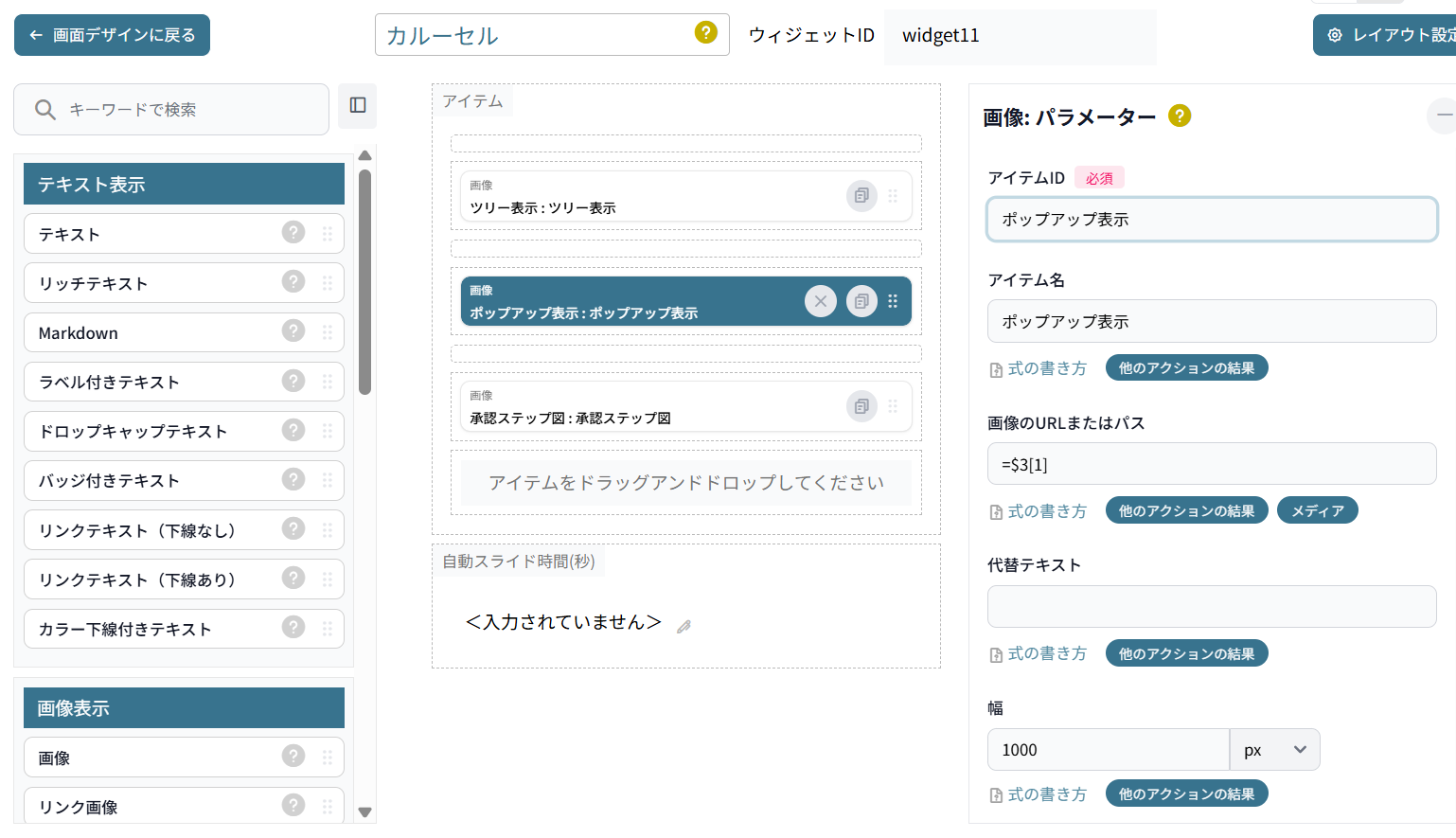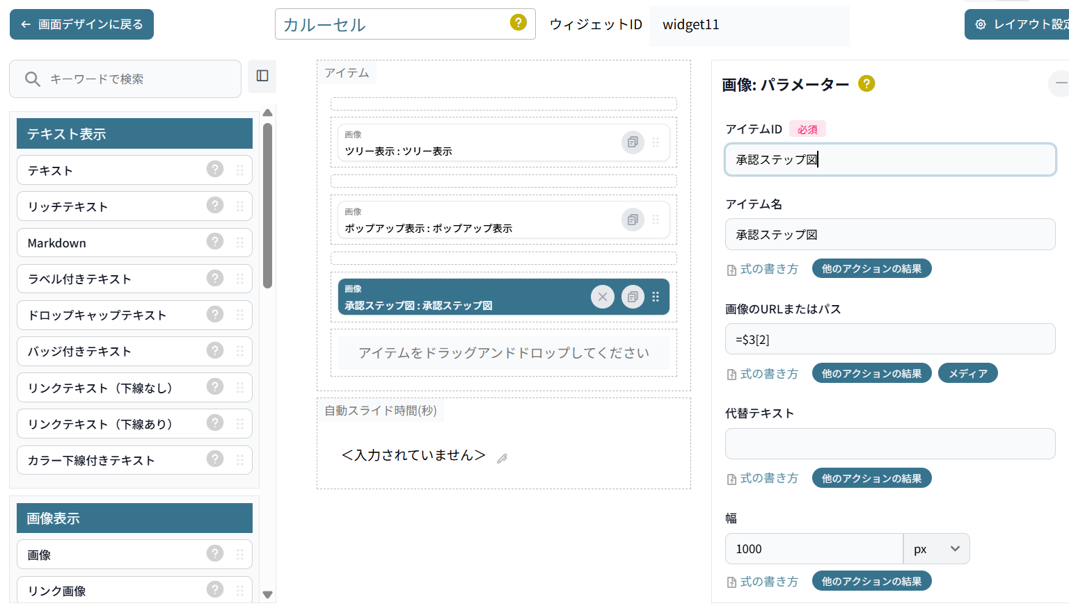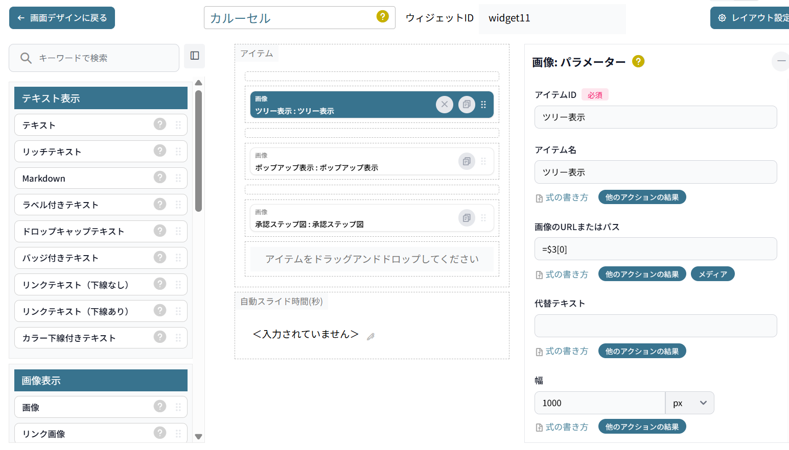 ここでは、画像等をスライド表示させる「カルーセル」に変更します。