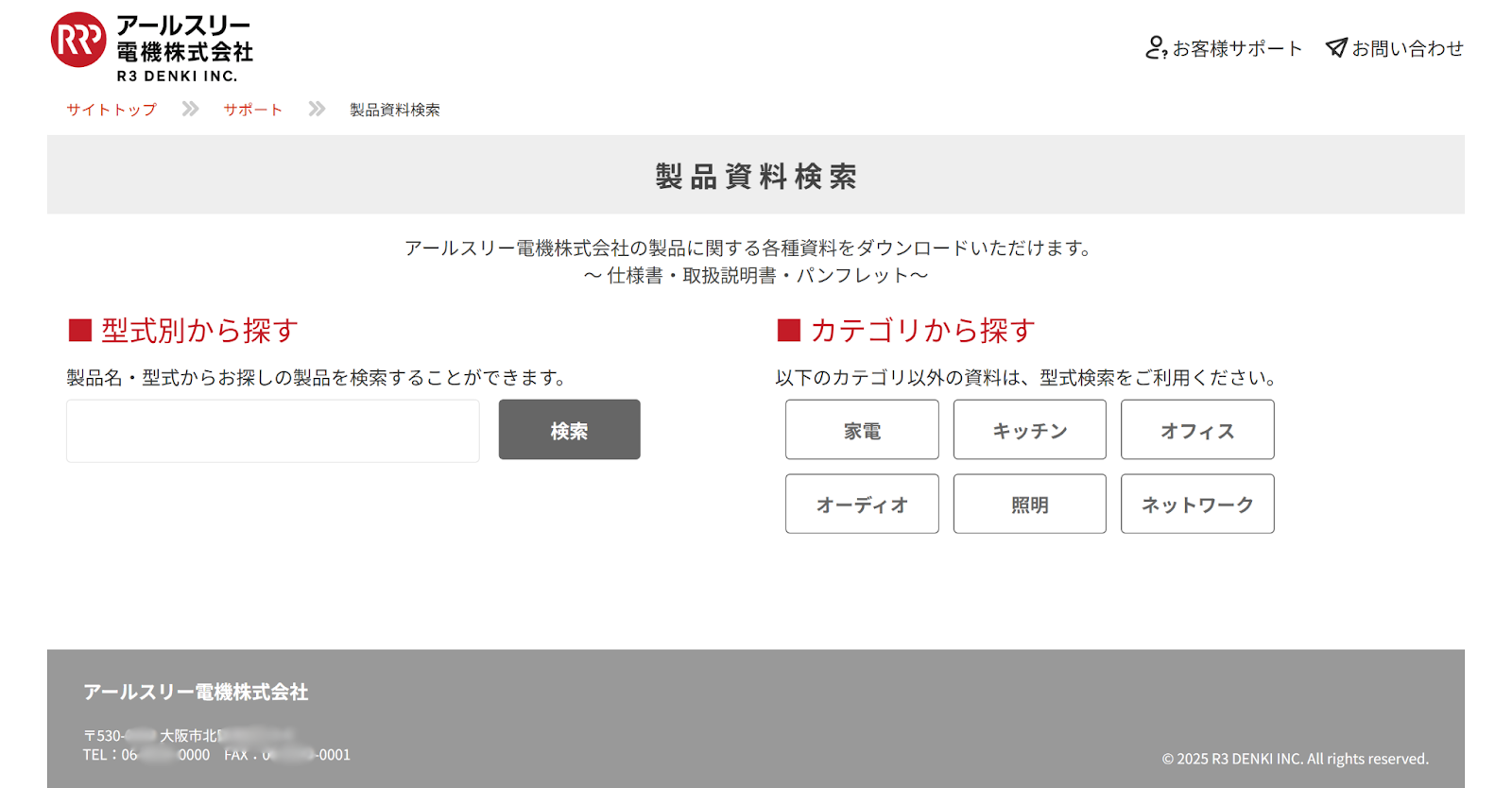 まず、「製品資料検索」ページの全体の流れは下記のようになっています。