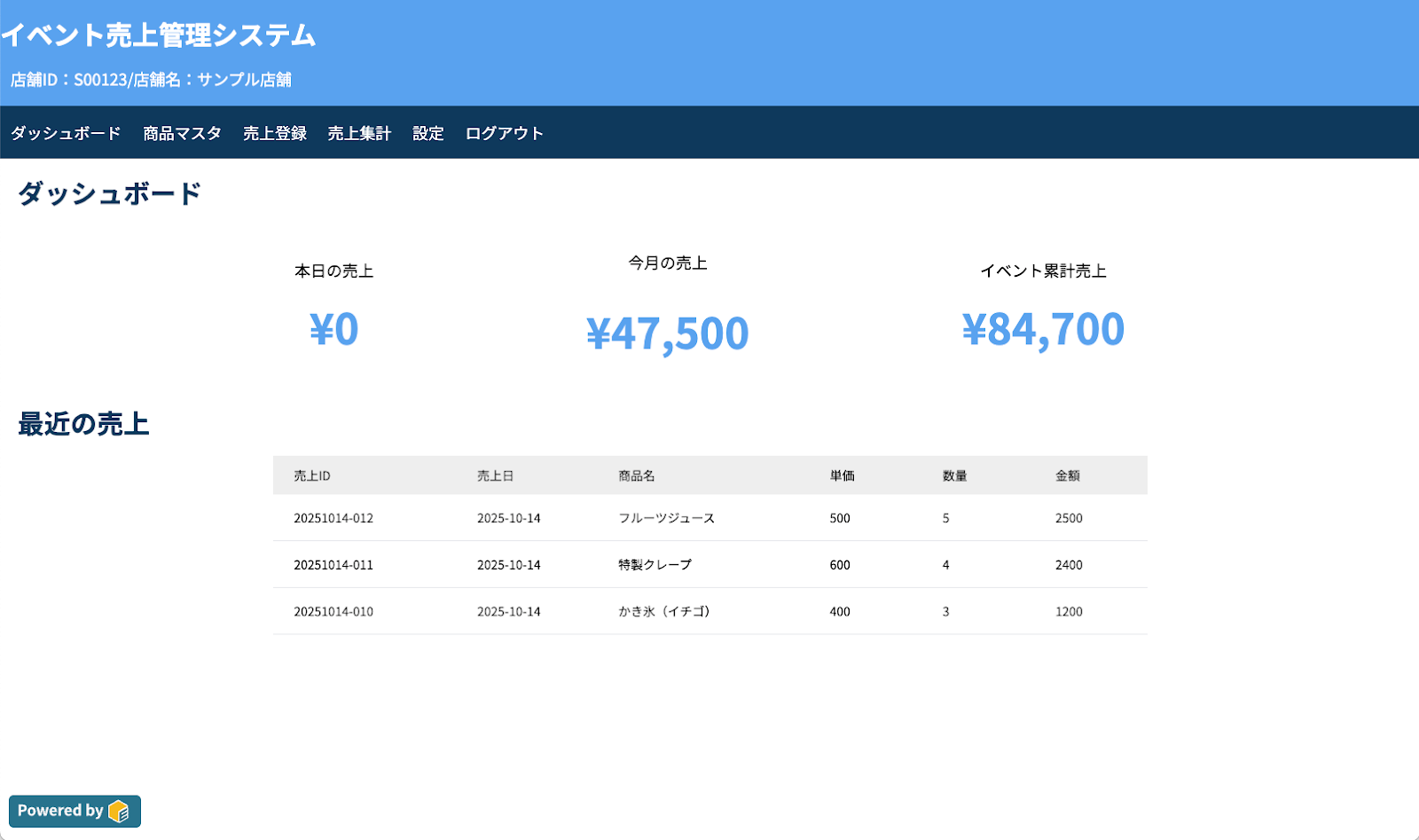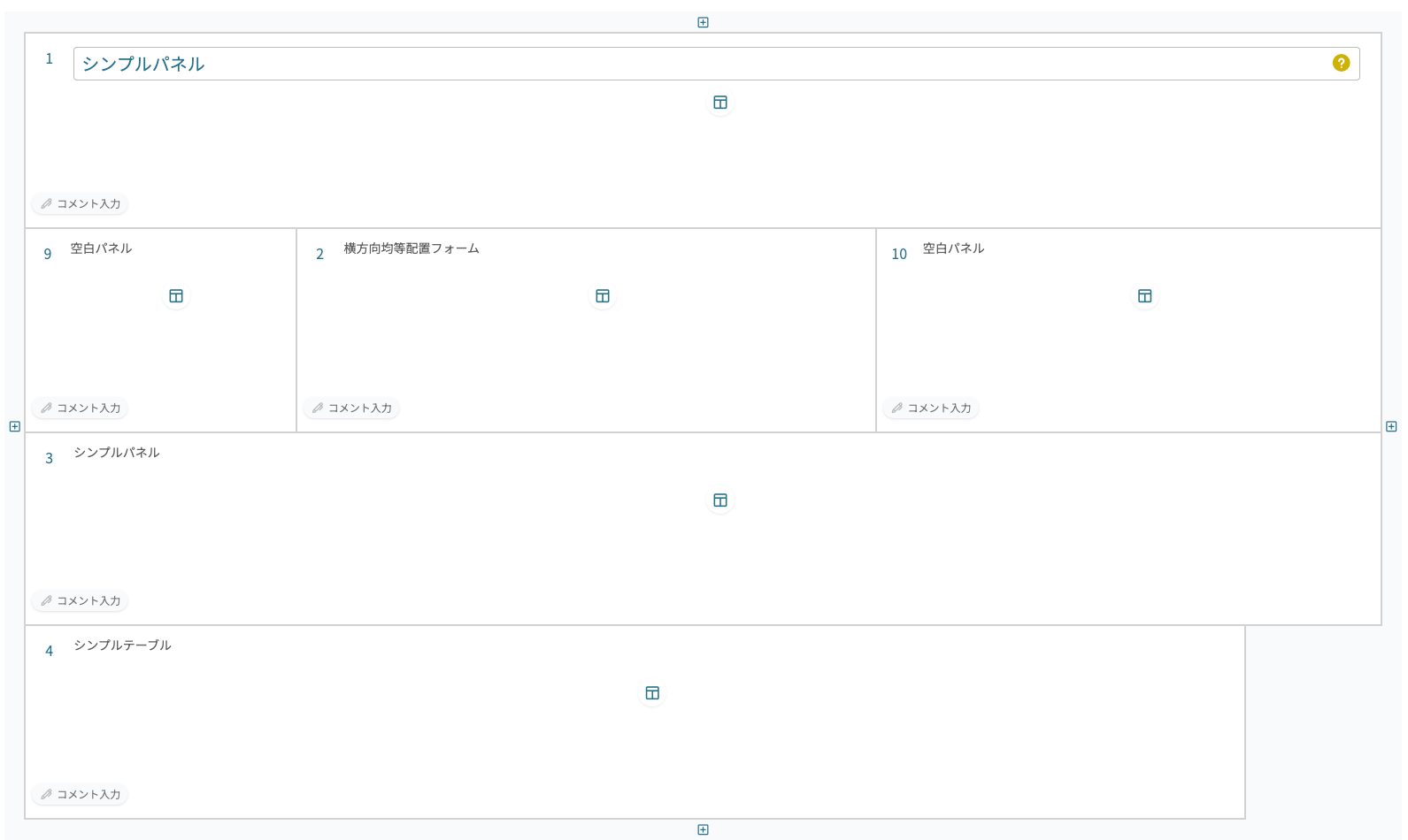 ダッシュボードでは、当日・当月・全体の3つの集計があるので、集計値を横並びで表示しています。その下に、直近3件の売上を表示するためにシンプルテーブルを配置しています。