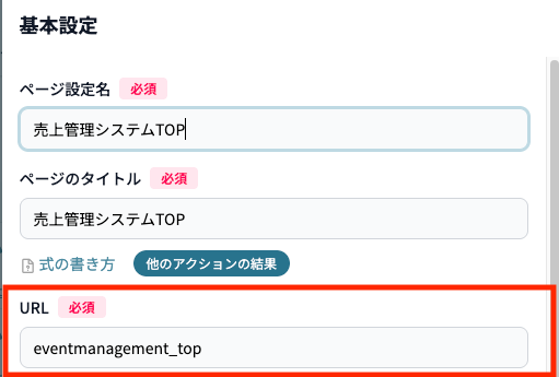 今回は4ページ作成していますが全てを紹介すると冗長になるので、設定の中で主なものを紹介します。