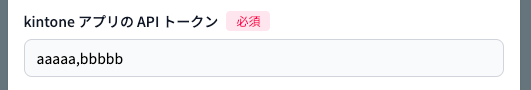 そのため、接続設定のAPIトークンでは2つのAPIトークンを,区切りで設定する必要があります。APIトークンのイメージとしては以下のような感じです。