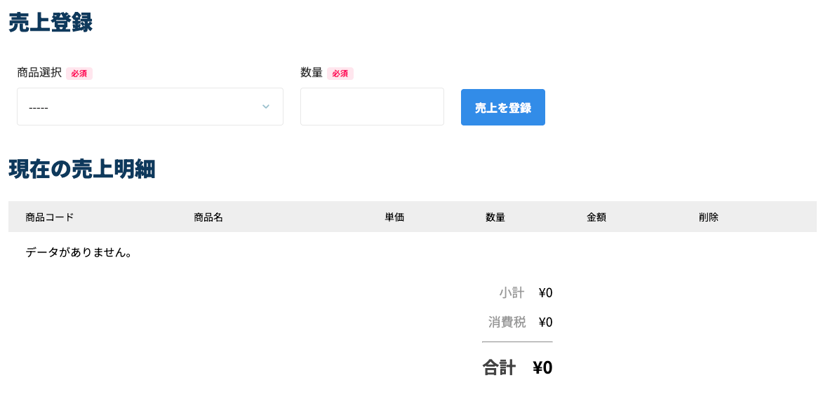 この画面では、売上明細をkintoneにレコード追加したり、「現在の売上明細」の下の部分は当日の商品のみを表示して集計値も計算しています。