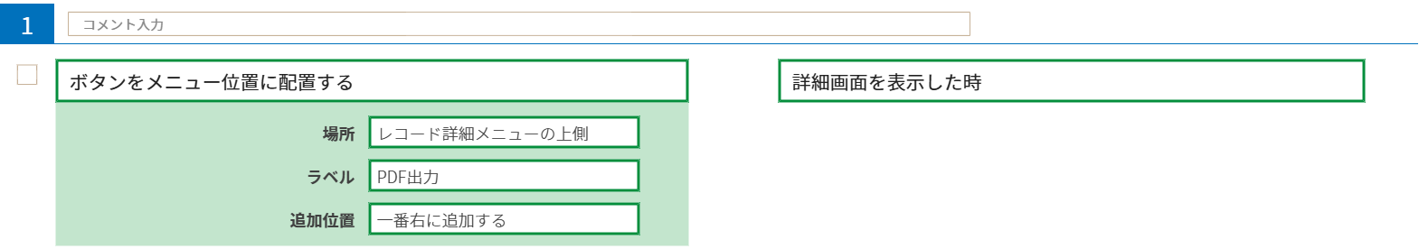 以下では、詳細画面でPDFファイルを出力した上で自身のレコードにある添付ファイルフィールドに先ほど出力したPDFファイルをセットするカスタマイズをご説明します。